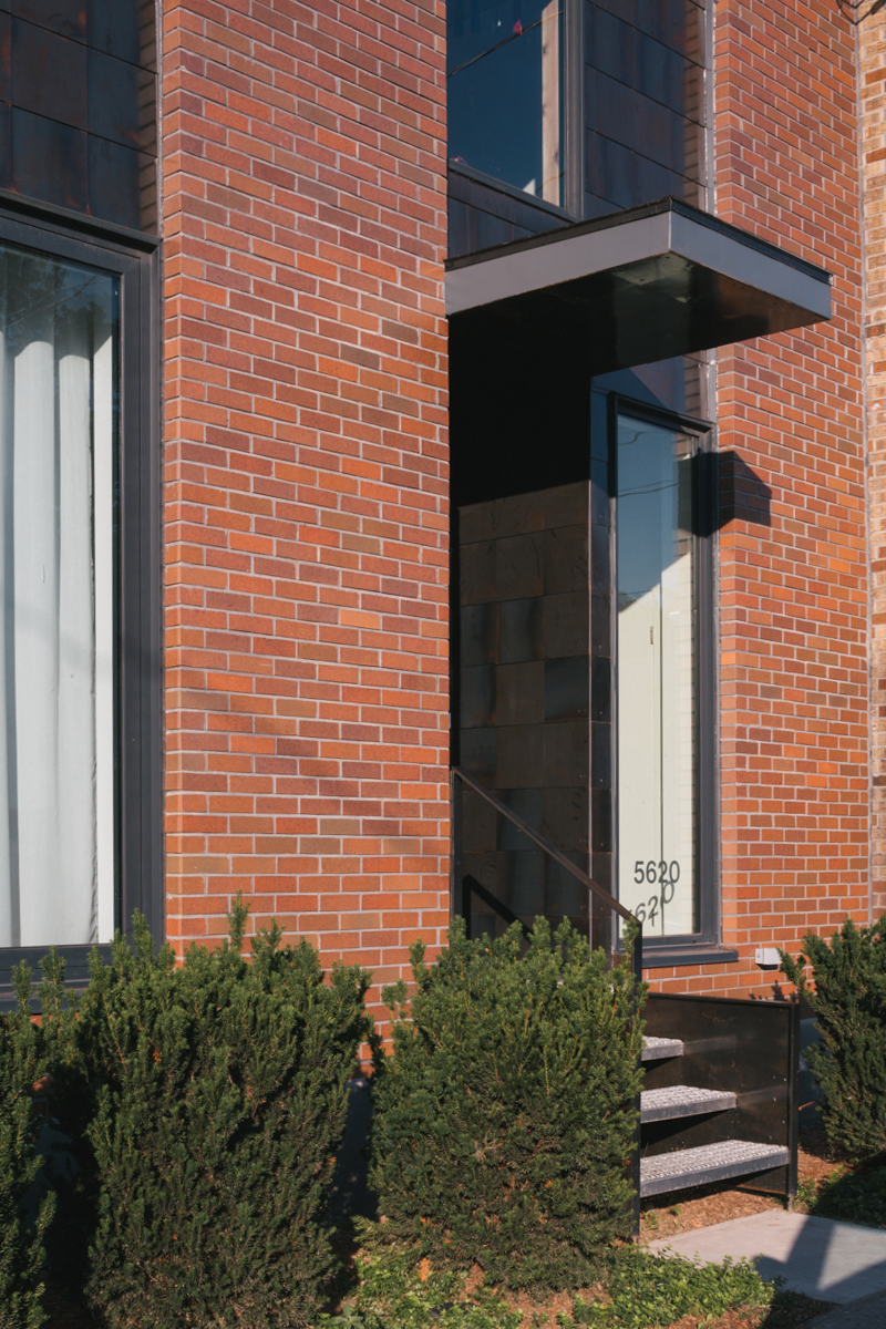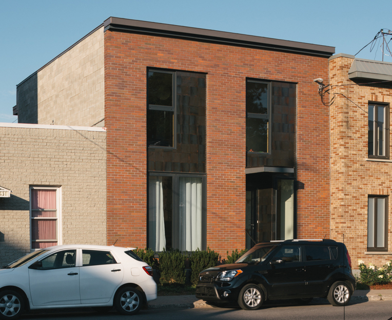 Les matériaux en façade sur rue reprennent l’aspect rouillé des friches industrielles environnantes.